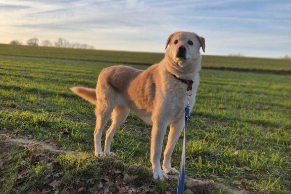 Die rund drei Stunden Autofahrt meisterte Cremona hervorragend. Ruhig und gelassen kam sie bei uns an und nahm sich erst einmal viel Zeit, unseren großen Hof ausgiebig zu beschnüffeln. Die erste Nacht verlief erstaunlich ruhig: kein Bellen, keine Unruhe – Cremona schlief entspannt in ihrem Körbchen.